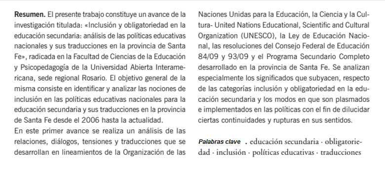 Figura 3: Ejemplo de resumen y palabras clave (Fuente: Cantini et al., 2018)