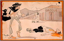 Figura 3: “Dios no castiga con palo”. 1930. Caricatura de Pepe Gómez “Díaz”[5]. Fuente: Colección de obras selectas de Pepe Gómez, 1987.