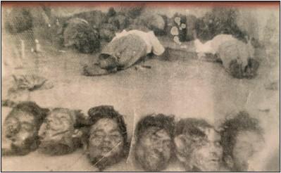 Los cadáveres aparecieron horriblemente mutilados en sus partes genitales y colocados en posiciones deshonestas que indicaban una clara y marcada intención erótica sexual. Luego, en el espacio de las dos o tres horas que permanecieron los antisociales en dicho lugar, violaron a cuatro mujeres (…). Se observó, como punto de interés, que las violadas eran esposa, madre e hijas de alguno de los muertos, y que otras mujeres residentes en el poblado no fueron molestadas, a pesar de ser más jóvenes que las dos primeras (op. cit., p. 394).