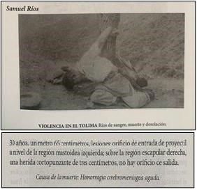 Fotografías rotuladas en La Violencia en Colombia de manera anónima y simbólica como “El Cristo campesino” fueron descritas de manera puntual en los libros de “Vipradel”. En este caso concreto, aquel nombrado “Cristo” por los autores del libro de 1962 se llamaba Samuel Ríos, tenía aproximadamente 30 años cuando lo mataron, medía un metro con 65 centímetros y la causa de su muerte había sido, según “Vipradel”, una “hemorragia cerebromeníngea aguda”.