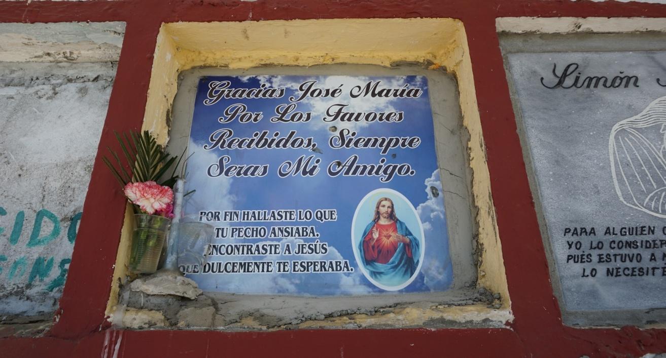 Las personas recuerdan como algo común la celebración de la misa cada lunes en el cementerio y el rezo de la novena a las ánimas tanto en noviembre –mes de las ánimas– como en los funerales[6]. Según varias personas, la devoción a San Nicolás de Tolentino también solía ser promovida. Sin embargo, hoy no muestra mucha vitalidad. La estatuilla de San Nicolás de Tolentino permanece en la antigua capilla del cementerio, que se ha convertido en un salón de osarios abierto al público como lugar de oración.
