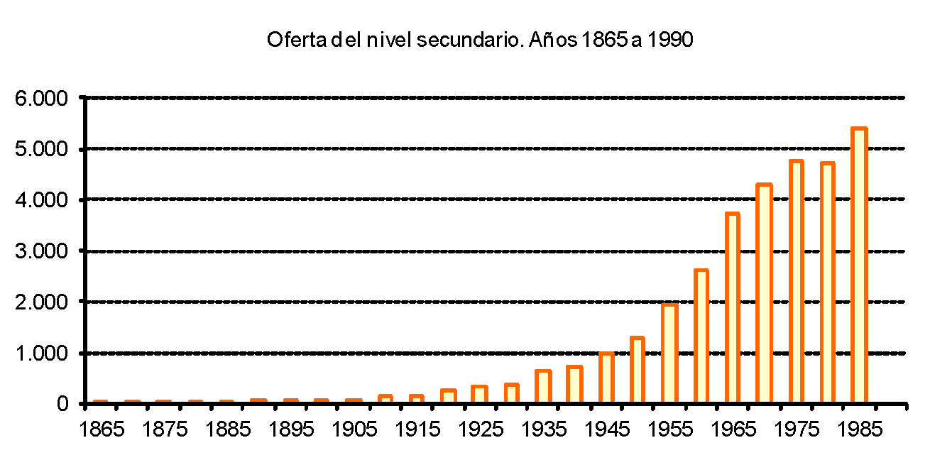 Gráfico 1. Evolución de la oferta para el nivel secundario (1865-1990)
