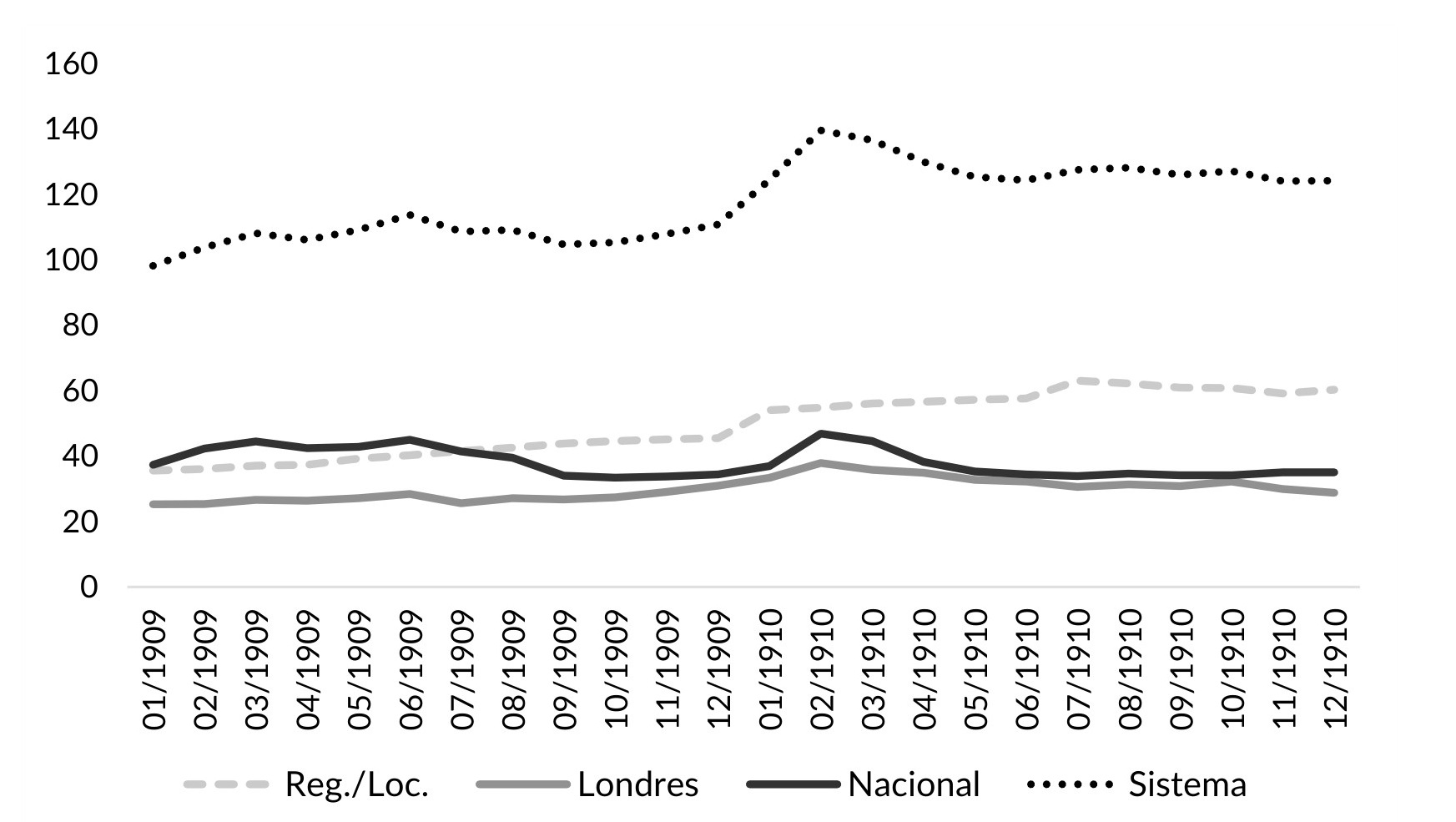 Gráfico IV.8. El apalancamiento, enero de 1909-diciembre 1910