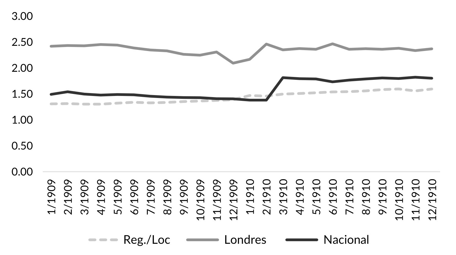 El crédito mostró un aumento del 17% entre enero de 1909 y diciembre de 1910 (0,7% promedio mensual). Este crecimiento se repartió por partes iguales entre el Banco Nacional y los bancos regionales/locales, por lo que el de Londres perdió algo de su cuota de mercado. Al final del período, el 41% del mercado estaba en manos de los bancos regionales; el 37,5%, en las del Nacional, y el 21,5%, en las del Londres. Así, a pesar de que el número de bancos regionales/locales se redujo con la crisis, estos continuaron teniendo la más alta cuota del mercado.