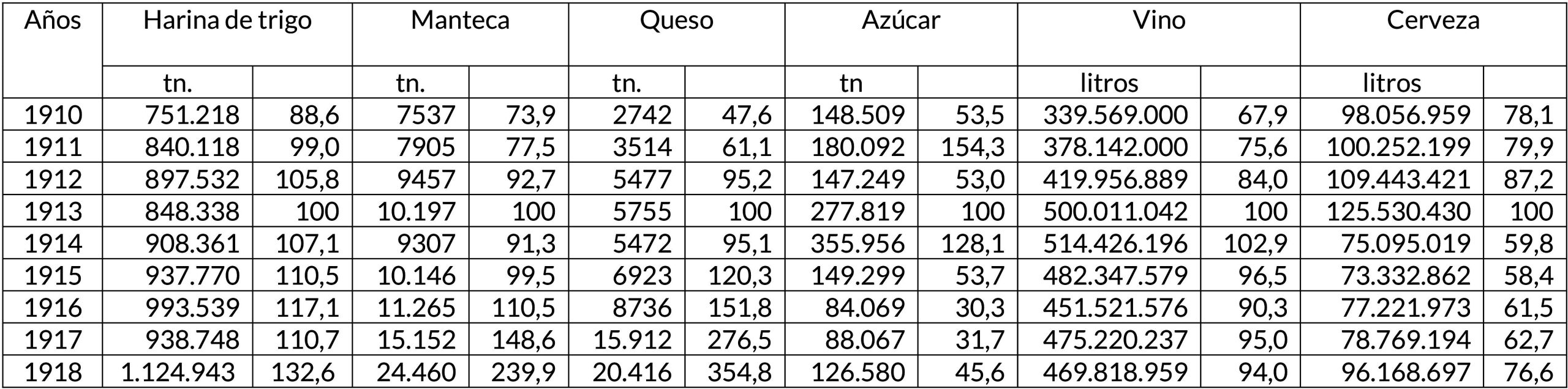 Cuadro 3. Evolución de la producción de alimentos y bebidas, 1910-1918, 1913: 100