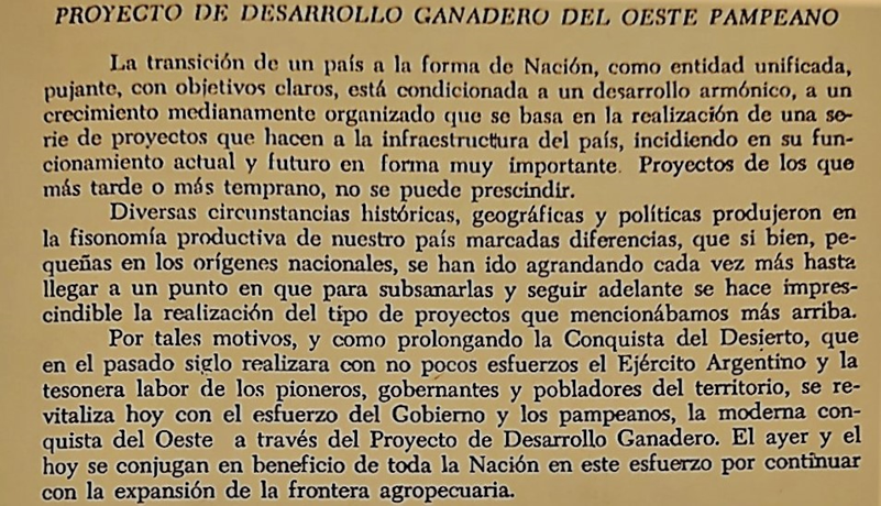 mejoramiento de la calidad de vida y de trabajo de los pequeños productores de subsistencia del Extremo Oeste pampeano y que signifique (…) la eliminación de la situación de marginalidad y aislamiento es la base sobre la que se sustentará el rápido crecimiento económico de la región. (…) La posibilidad de convertir estas economías de subsistencia en empresas agropecuarias, con índices aceptables de rentabilidad, implicará un notable aumento de la productividad por hectárea, una redistribución de la tierra” (Agropampeano, 1985, p. 7-9).