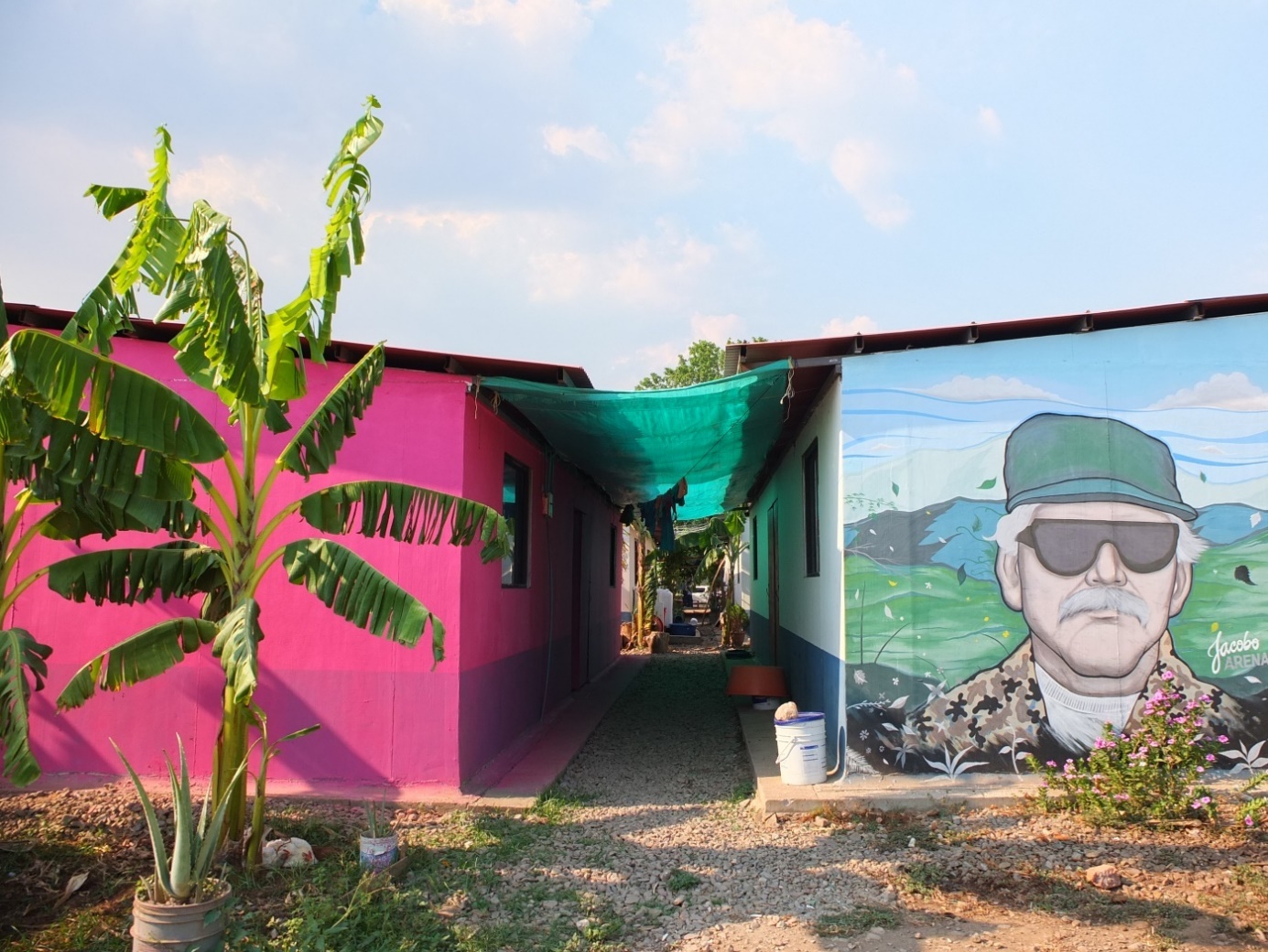 Tierra Grata tiene la ventaja de estar ubicado cerca del aeropuerto de Valledupar, así que es muy accesible. Por esta razón, tanto Pondores como Tierra Grata, que se encuentran en la cercanía de la frontera con Venezuela, fueron visitados por delegaciones nacionales e internacionales de alto rango, como el presidente colombiano Iván Duque y el Alto Comisionado para la Paz, entre otros. En cambio, a La Elvira es mucho más difícil llegar por su ubicación y el mal estado de la carretera, especialmente en épocas de lluvia. En resumen, la ubicación geográfica de cada zona puede explicar que la presencia regular de organismos nacionales (ARN, SENA) e internacionales (Naciones Unidas) varíe significativamente, lo que tiene consecuencias a la hora de sentirse integrados y atendidos, como nos comentaron excombatientes en varias entrevistas. Pudimos observar la presencia más fuerte de instituciones en Tierra Grata, donde personal de la ARN y del Servicio Nacional de Aprendizaje (SENA), así como la delegación de la ONU y la FAO, se mantuvieron permanentemente en el campamento, incluso con oficinas y mesas de consulta.