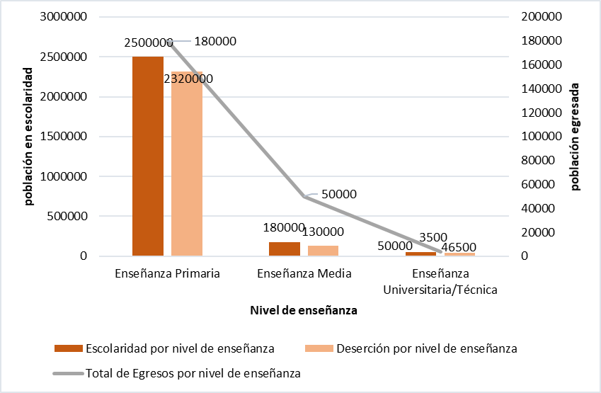 - que existía un alto grado de deserción escolar por nivel de enseñanza, concentrándose en el sector primario la mayoría de la población escolar nacional,