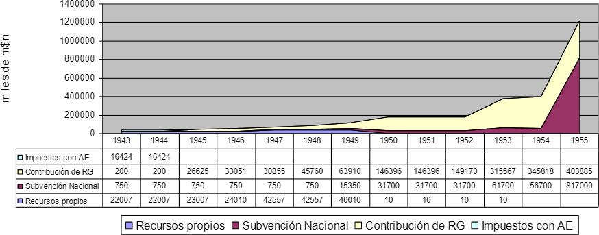 Gráfico 1.2. La composición de los recursos para la educación 1943-1955