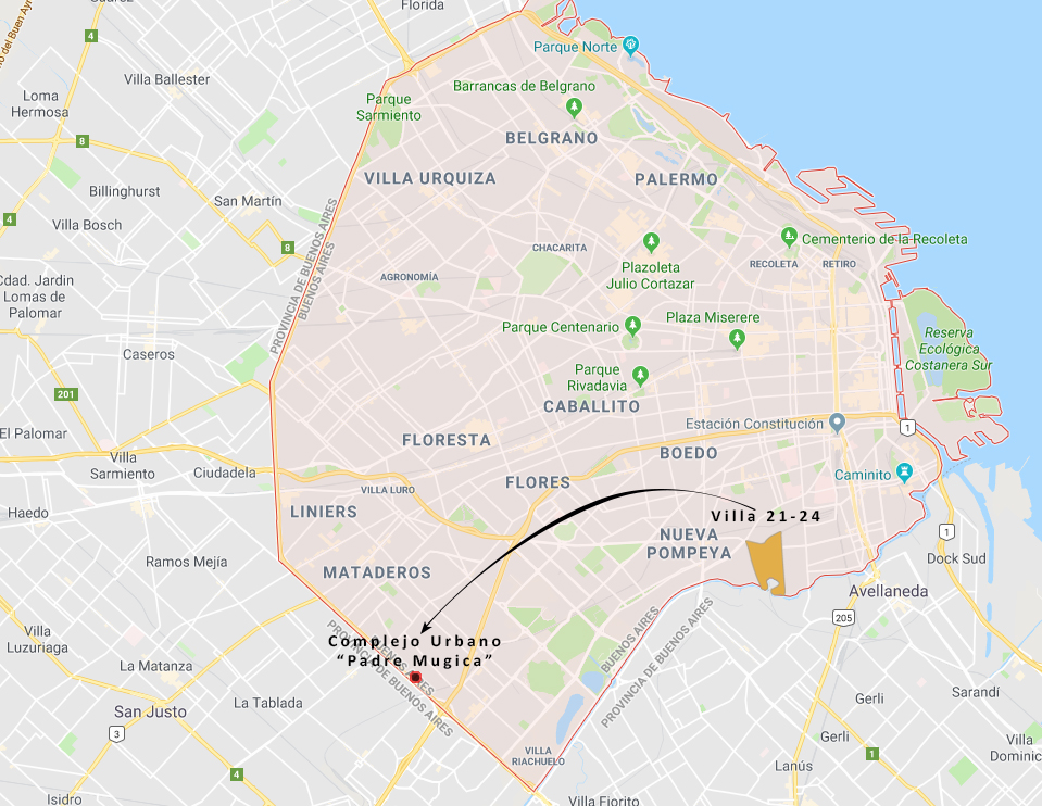 Mapa 6. Ubicación de la Villa 21-24 y del Complejo Urbano “Padre Mugica” en la ciudad de Buenos Aires