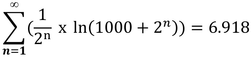 Esta tabla es ilustrativa de cómo la utilidad no es ya sinónimo de ganancia monetaria. Vemos que a medida que aumentan las ganancias, su utilidad también aumenta pero de manera decreciente. Moscati (2023) reconstruye de manera simplificada las ecuaciones que representan la solución de la paradoja por parte de Bernoulli[3]. Por ejemplo, si aplicamos la nueva fórmula ya no ponderamos la probabilidad del evento por su valor monetario, sino por su utilidad. Así, veremos que para alguien cuya riqueza inicial es de $1000 el juego no valdría ni $7.