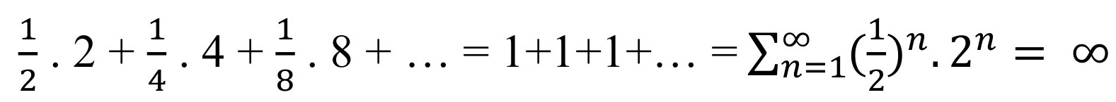 Esta cuenta y subsiguiente fórmula[1] nos están señalando un problema: el valor esperado del juego es infinito, o lo que es lo mismo, uno debería estar dispuesto a pagar todo lo que tiene para jugar el juego, lo que a todas luces sería inaceptable. Este problema se lo bautizó como la paradoja de San Petersburgo, dado que en esa ciudad impartía sus clases Daniel Bernoulli (1700-82). Este matemático suizo fue el creador de la resolución más famosa de la paradoja, al crear precisamente la teoría de la utilidad esperada, aunque no precisamente con ese nombre.