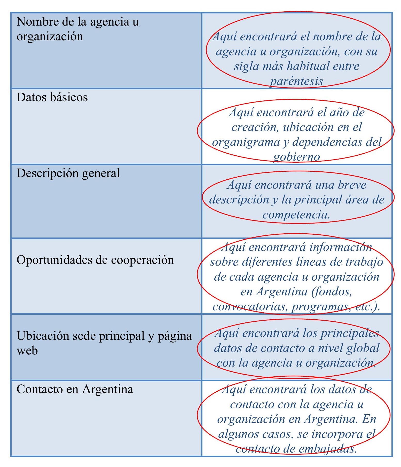 A continuación, se presenta un breve cuadro con la información básica que encontrará en cada sección de la ficha: