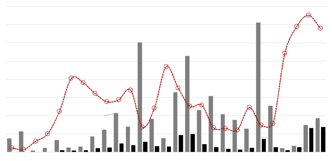 Figura 3. Representación del comportamiento del dengue en México y del índice de gravedad entre 1998 y 2024