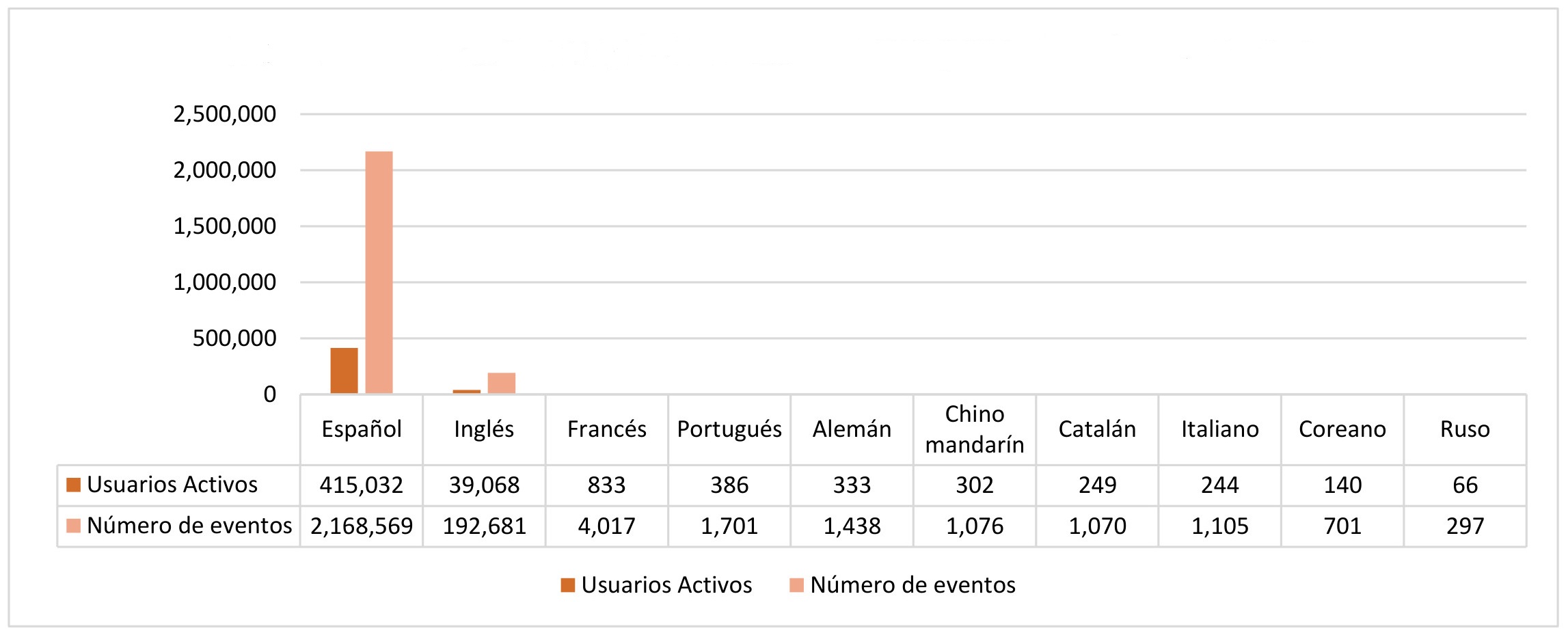 al portal de noticias. Datos demográficos: top 10 de idiomas con procedencia de usuarios