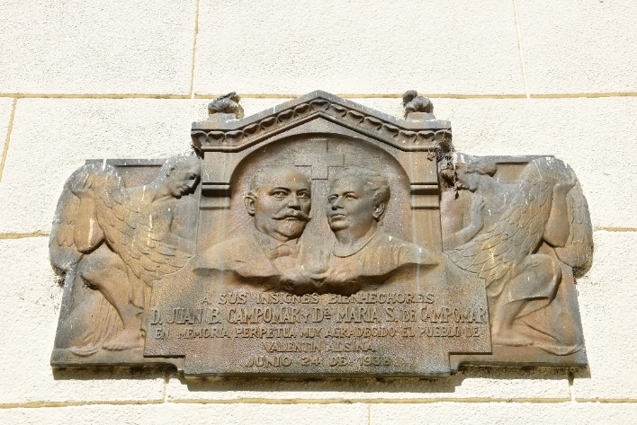 Indudablemente, este hecho vuelve a poner de manifiesto el compromiso de toda la familia Campomar, y de María en particular, con el ideario católico. En este sentido, la Figura 2 nos muestra una placa conmemorativa ubicada en la fachada de la iglesia como forma de homenaje a estas contribuciones materiales de los miembros de la empresa para con la comunidad católica de la zona.