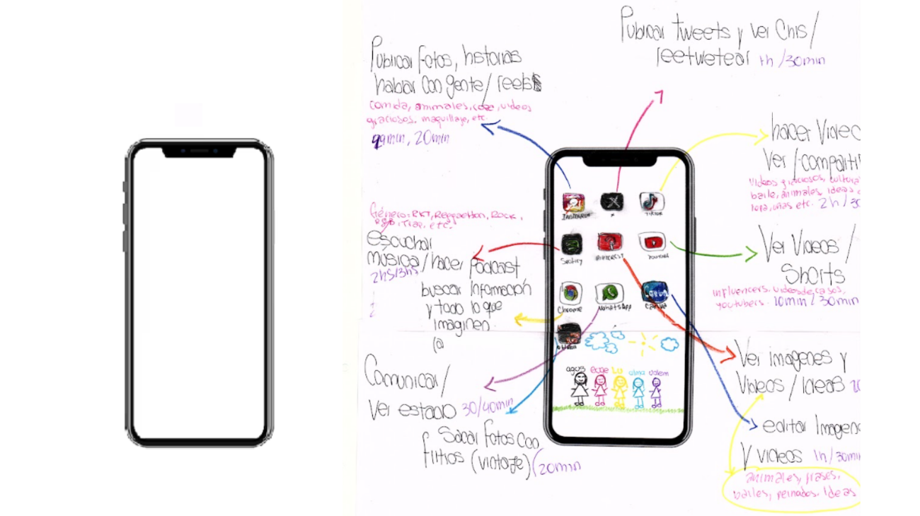 ¿En qué tiempo y lugar se usan las apps? O, por el contrario, ¿existen tiempos y lugares donde su uso aparece ausente? La primera fue una de las preguntas que propusimos a las y los jóvenes para la elaboración de las cartografías digitales. Nos miraban con extrañeza y perplejidad: “¡En cualquier lado!”, “En toda mi vida”, “Todo el tiempo”, son frases que reflejaban la impregnación de los dispositivos digitales móviles, principalmente el celular, en diversos espacios y tiempos de la cotidianeidad juvenil, siendo escasos los momentos en que su uso se encontraba limitado. Por ejemplo, al realizar actividades deportivas o por restricciones de accesibilidad. Sin embargo, encontramos matices en los usos, tiempos y espacios en virtud de lo que parecen ser gustos singulares y modalidades grupales, pero también, desigualdades y agenciamientos que se juegan de manera específica en el mundo digital.