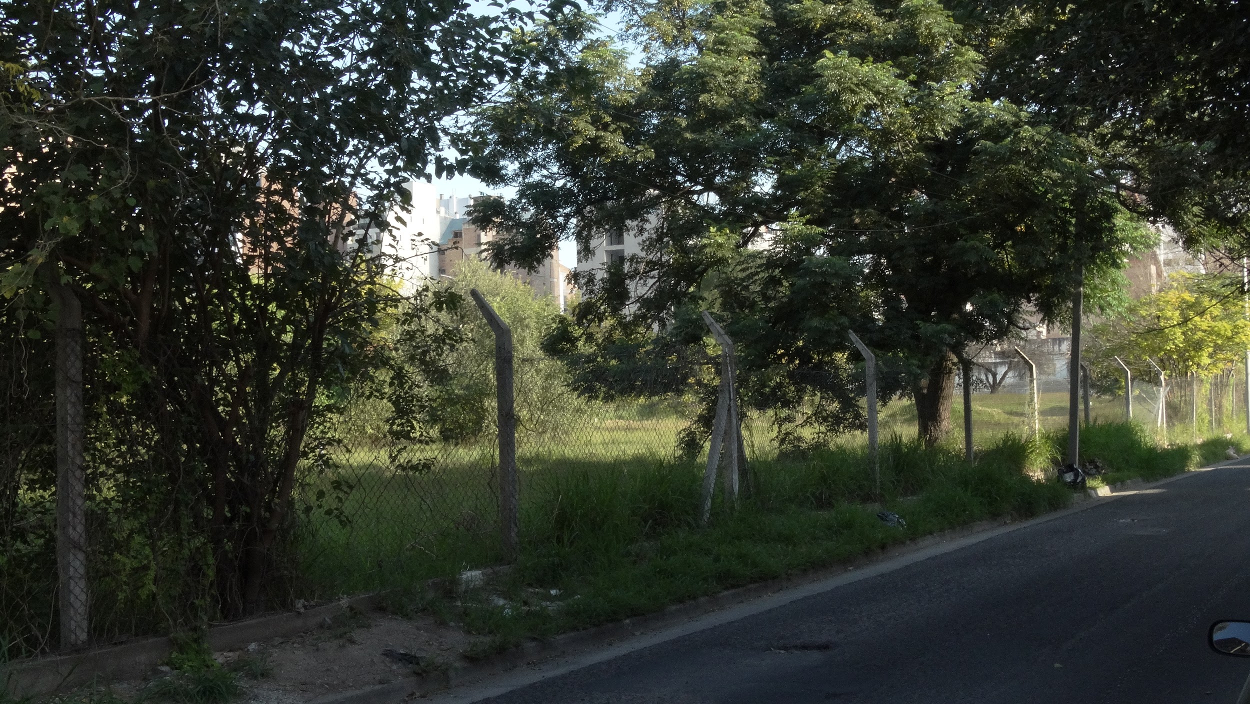 Desde la primera secuencia de fotos tomadas, ya con el conocimiento de que pronto se edificará una fachada enorme, novedosa y de un costo altísimo, la imaginación puede condicionar la mirada y adelantarse a los futuros cambios que vendrán. Primero por el hecho de observar desde la avenida Vélez Sarsfield una abundante cantidad de árboles (Figura 1).