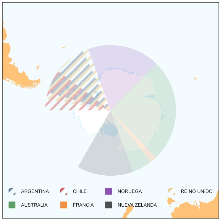 Figura 3. Reclamos territoriales de Argentina, Australia, Chile, Francia, Noruega,