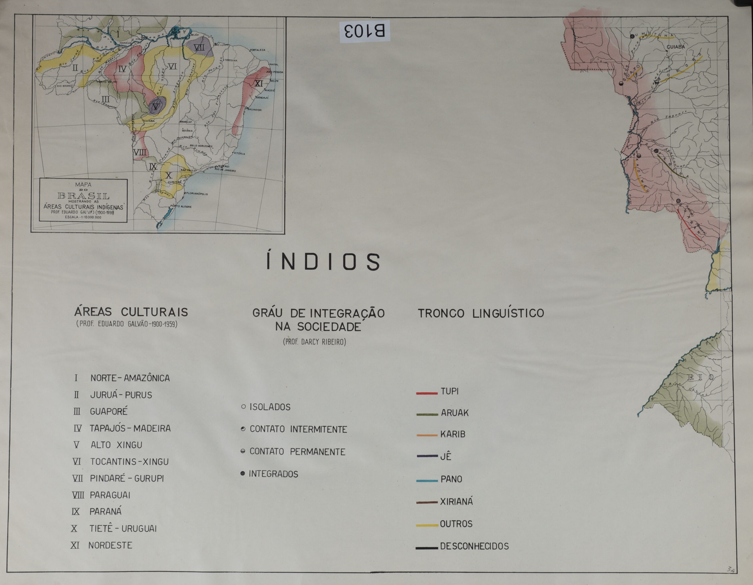 Figura 1. Mapa etnográfico do Brasil (1961) elaborado por el Consejo Nacional de Protección de los Indios de Brasil