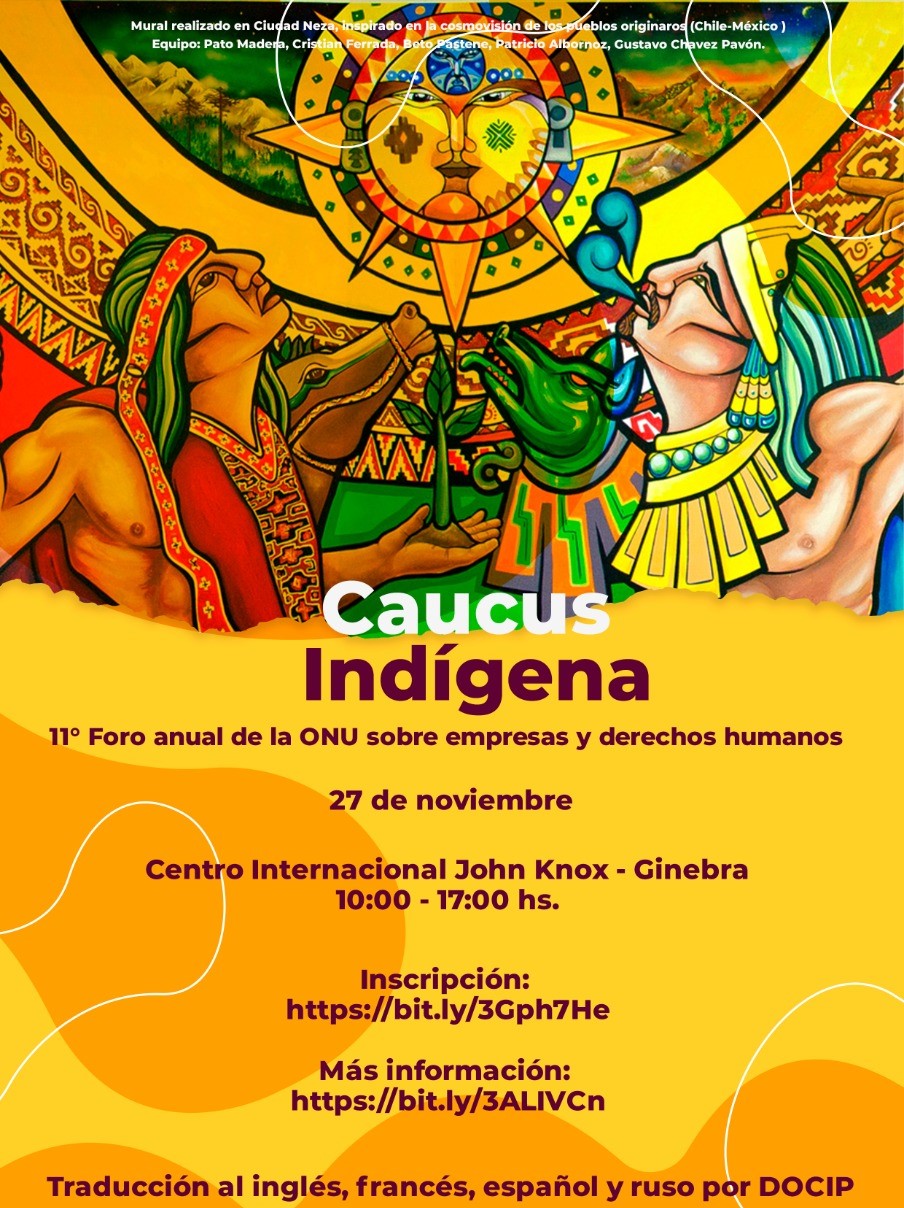 Figura 2. Afiche de difusión del Caucus indígena en el 11vo Foro de la ONU sobre Empresas y Derechos Humanos llevado a cabo el 27 noviembre de 2023