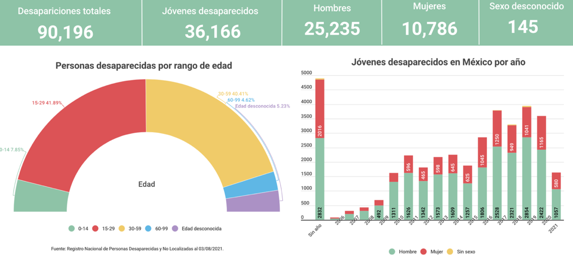 Registro Nacional de Personas Extraviadas y Desaparecidas (RNPDNO) (2021). Informe estadístico. Ciudad de México: Secretaría de Gobernación. Disponible en https://rnped.segob.gob.mx/. Consultado en 03/08/2021.