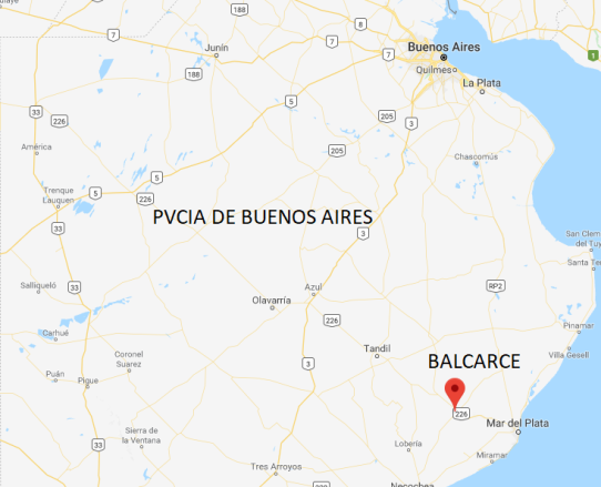 con la localidad de Balcarce, Argentina, marcada