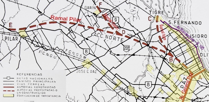 En 1940 comenzaron los trabajos preliminares para la realización del Acceso Norte (anteproyecto y tareas de reconocimientos). Este acceso nace en el límite de la Capital Federal (intersección entre la avenida General Paz y avenida del Tejar –en la actualidad avenida Ricardo Balbín–) y, a la altura de San Isidro, se bifurca en dos ramales: uno se dirige hacia Tigre, vinculándose con los pueblos ribereños del norte, y el otro continúa hasta el km 21 luego del cruce con la ruta 202 –reconocida a principio de la década de 1950 como “la zona rural”–, donde nuevamente se divide en dos ramales: uno que empalma con la rn n.° 8 a la altura de Pilar y el otro, con la rn n.º 9, próximo a Garín.