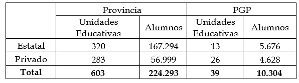 En el caso de estudio de esta investigación, el cinturón hortícola del PGP, se encuentran diferentes ofertas de nivel secundario y superior, así como alternativas que posibilitan la finalización de la educación obligatoria. Las instituciones primarias y secundarias se encuentran distribuidas en todas las localidades del partido. Existen 147 unidades educativas destinadas al nivel secundario, donde prevalece la gestión estatal (Cuadro 3) y de ella, 18 son de gestión municipal (Municipalidad de General Pueyrredón- Educación, 2019).