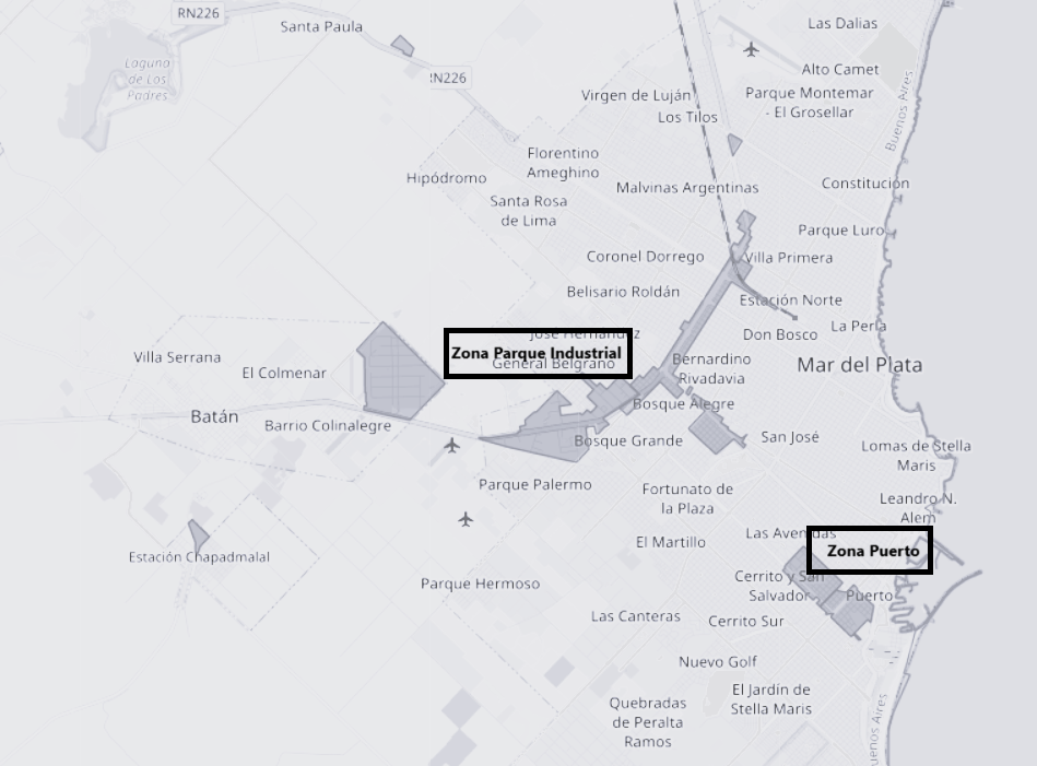 El Parque Industrial está emplazado a nueve kilómetros de la ciudad en la ruta 88“en un nudo de vías de comunicación que permite la ágil vinculación con otras localidades y con terminales de trenes, puerto y aeropuerto, permitiendo una rápida conexión con el Mercosur y el resto de los mercados” (CFI, 2018: 23). El fácil acceso del Parque Industrial posibilita que sea una oferta laboral disponible tanto para quienes residen en la ciudad de Mar del Plata como en otras zonas del partido, como es el cinturón hortícola. En este sentido, para la movilidad de los trabajadores se puede acceder mediante líneas de colectivos 720 y 715 (Notas de campo, 2018) que unen distintos puntos de la ciudad de Mar del Plata con la localidad de Batán y la de Estación Chapadmalal, a través de la ruta 88. A su vez, cuentan con un ramal que se desvía a El Colmenar, barrio ubicado camino a Batán.