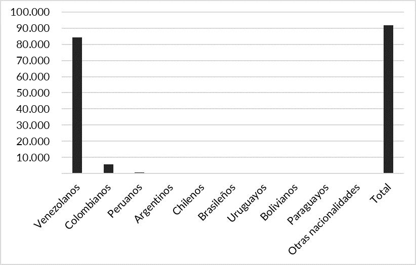 Pese a ello, al no solicitar ningún requisito vinculado a la actividad laboral ni a la solvencia económica del solicitante, la conocida como “visa Unasur” se constituyó en el principal mecanismo de regularización para los ciudadanos suramericanos. Con este instrumento se regularizaron 91.762 en tres años (2017-2019), el 92 % migrantes venezolanos, el 6 % colombianos y el 2 % del resto de países de la región.