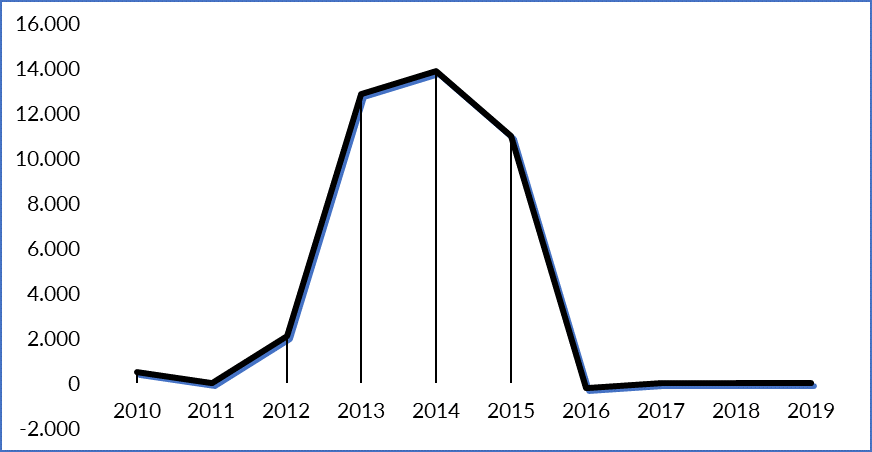 Gráfico 1. Saldo migratorio de haitianos en el Ecuador (2010-2019)