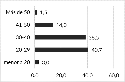 | Gráfico 5. Rangos de edad de la población haitiana en Pichincha-Ecuador (%)
