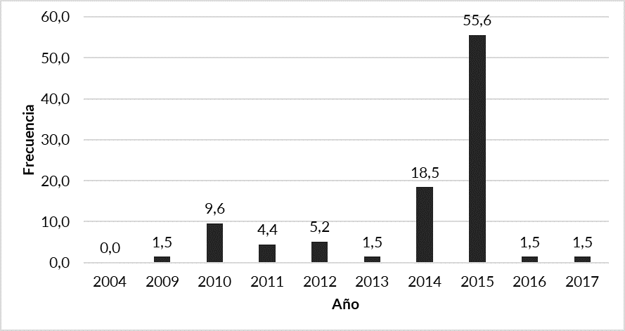 Gráfico 8. Año de llegada de la población haitiana al Ecuador