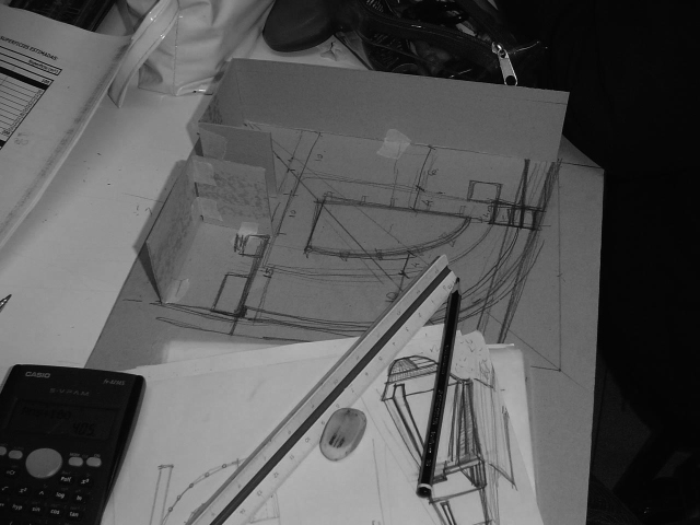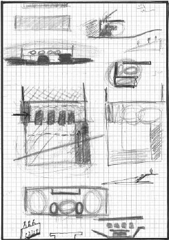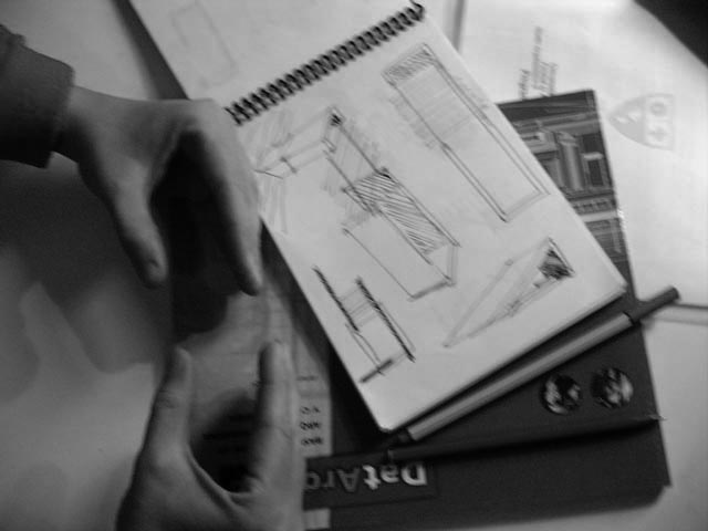 Se habla aquí de los primeros bocetos espaciales, realizados con materiales y técnicas muy alejados de los reales, con su alto grado de abstracción, donde el plano expresivo no remite a imágenes inmediatas, sino a intrincadas conexiones, inferencias y asociaciones que se deben procesar.