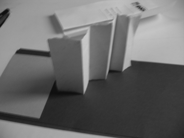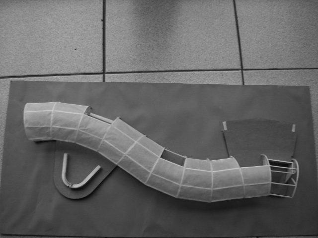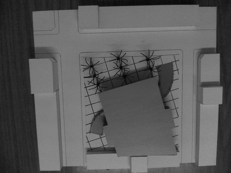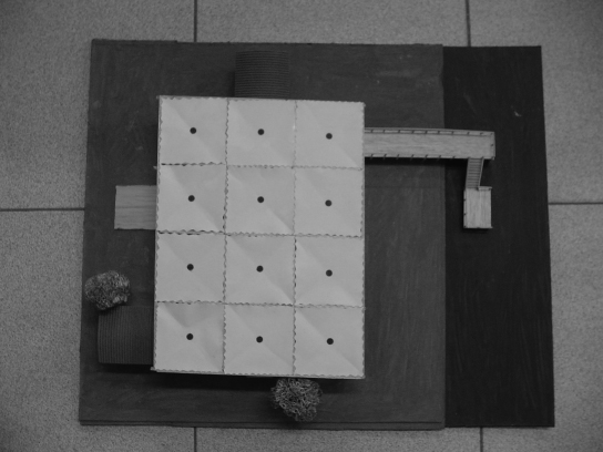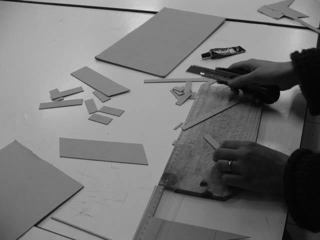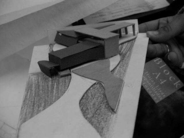 Un cartón plegado, unos lápices sobre la goma de borrar, un papel toscamente recortado al lado de un trozo de telgopor, no instalan una significación inmediata. Revelar, correr el sutil velo que cubre a estos insólitos conjuntos de objetos de tan distinta naturaleza, alejados de las reales dimensiones, escalas y materialidades sobre las que se especula, es todo un riesgo y un gran esfuerzo. Conjeturar las intenciones que desde tan precaria composición intentan proclamar es un acto de decodificación altamente complejo y difícil de controlar en términos operativos. La dosis de esperanza cifrada en elementos descartables, precarios y extravagantes se conjuga con la infinita capacidad de arriesgar posibles sentidos y significaciones; el imaginario resulta incentivado por un plano expresivo polisémico y abierto a múltiples especulaciones. Estos modelos aportan a la definición de los rasgos espaciales o formales más notables y estructurales de una potencial o latente estrategia del proyecto.