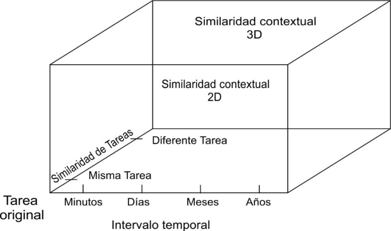 Klahr y Chen (2011) adaptaron esta clasificación y propusieron un modelo para pensar en la transferencia según tres dimensiones. Una dimensión referida a la similitud de tareas, una dimensión contextual y, por último, una dimensión temporal.