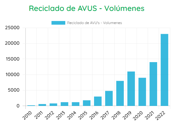 La recolección de AVU viene en aumento a lo largo de los años en la Argentina. Si bien no hay datos generales, se puede visualizar en casos concretos, como el de la empresa DHSH, que aumentó la cantidad de convenios firmados con municipios: se realizaron 71 en 2 años, en tanto el Municipio de San Miguel aumentó más de un 20 % la recolección de AVU entre 2021 y 2022, pasando de 96.268 a 118.826 litros (Diario Redacción, 2022).