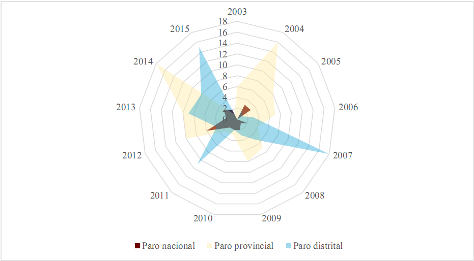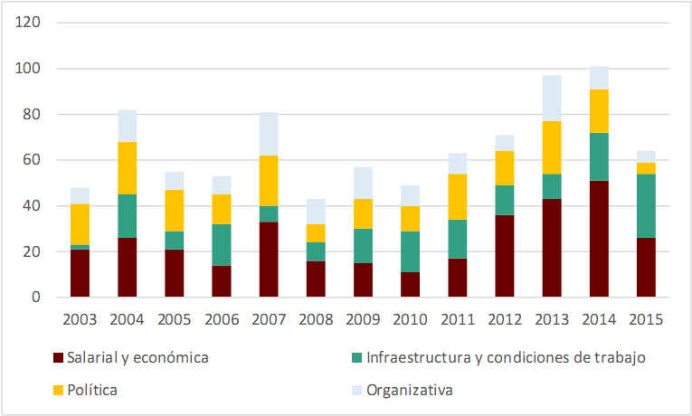 Gráfico 3. Tipos de paros efectuados por Suteba BB (2003‑2015)