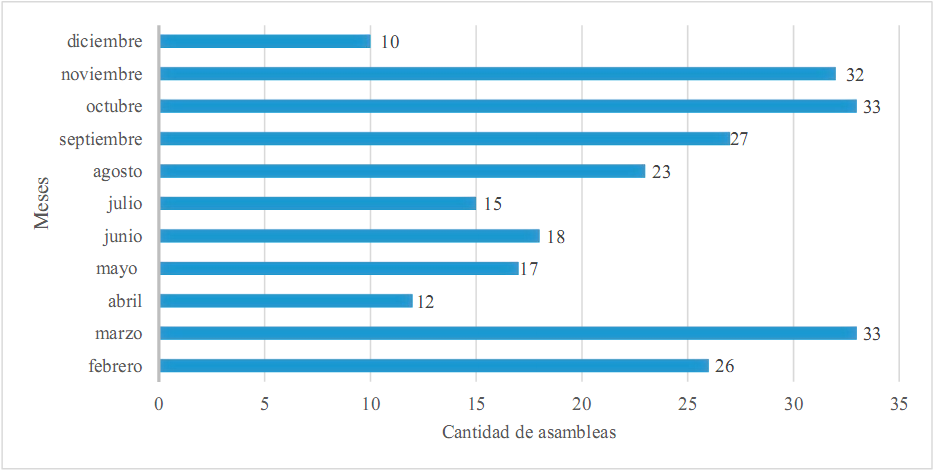 Tipos de acción predominantes: asambleas, manifestaciones y paros