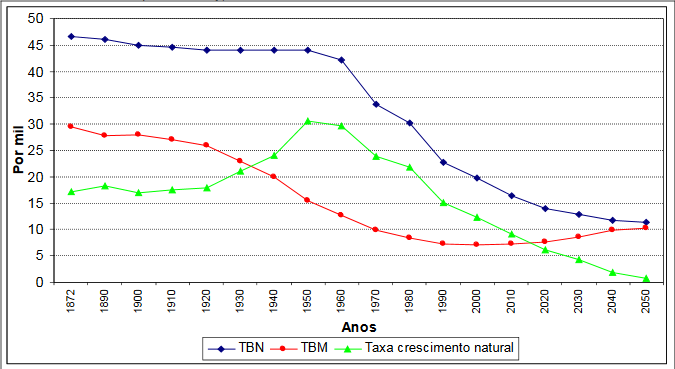 Figura 2 – Brasil, 1872-2050: Transição Demográfica