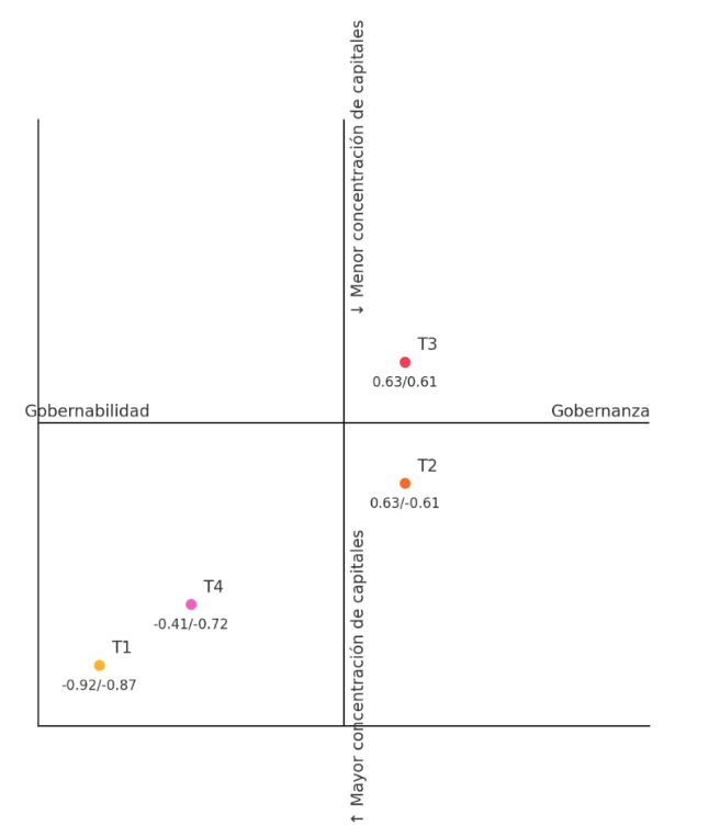 Gráfico 1. Tipologías territoriales en función de la gobernanza y los procesos de concentración de capitales en los territorios rurales