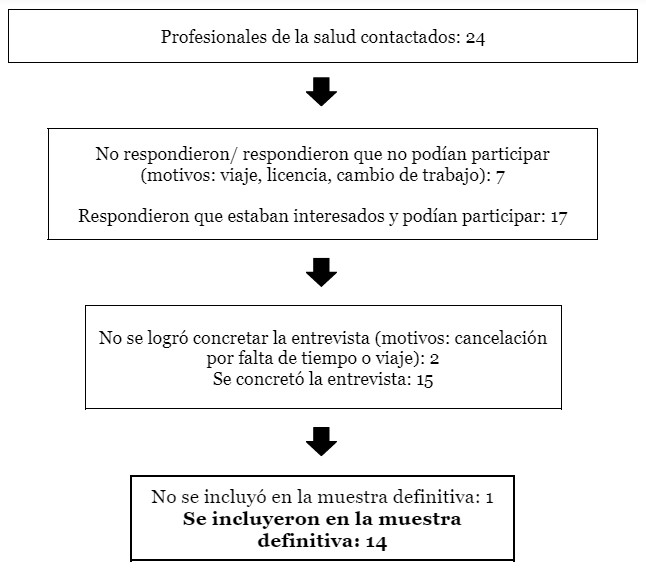 Nota: En la sección 3.3 Trabajo de campo y conformación de la muestra del Capítulo 3 se desarrollan los motivos por los cuales se consideró más apropiado que integren la muestra definitiva las 14 entrevistadas mujeres y dejar por fuera de la misma al único entrevistado varón (un médico de 68 años).