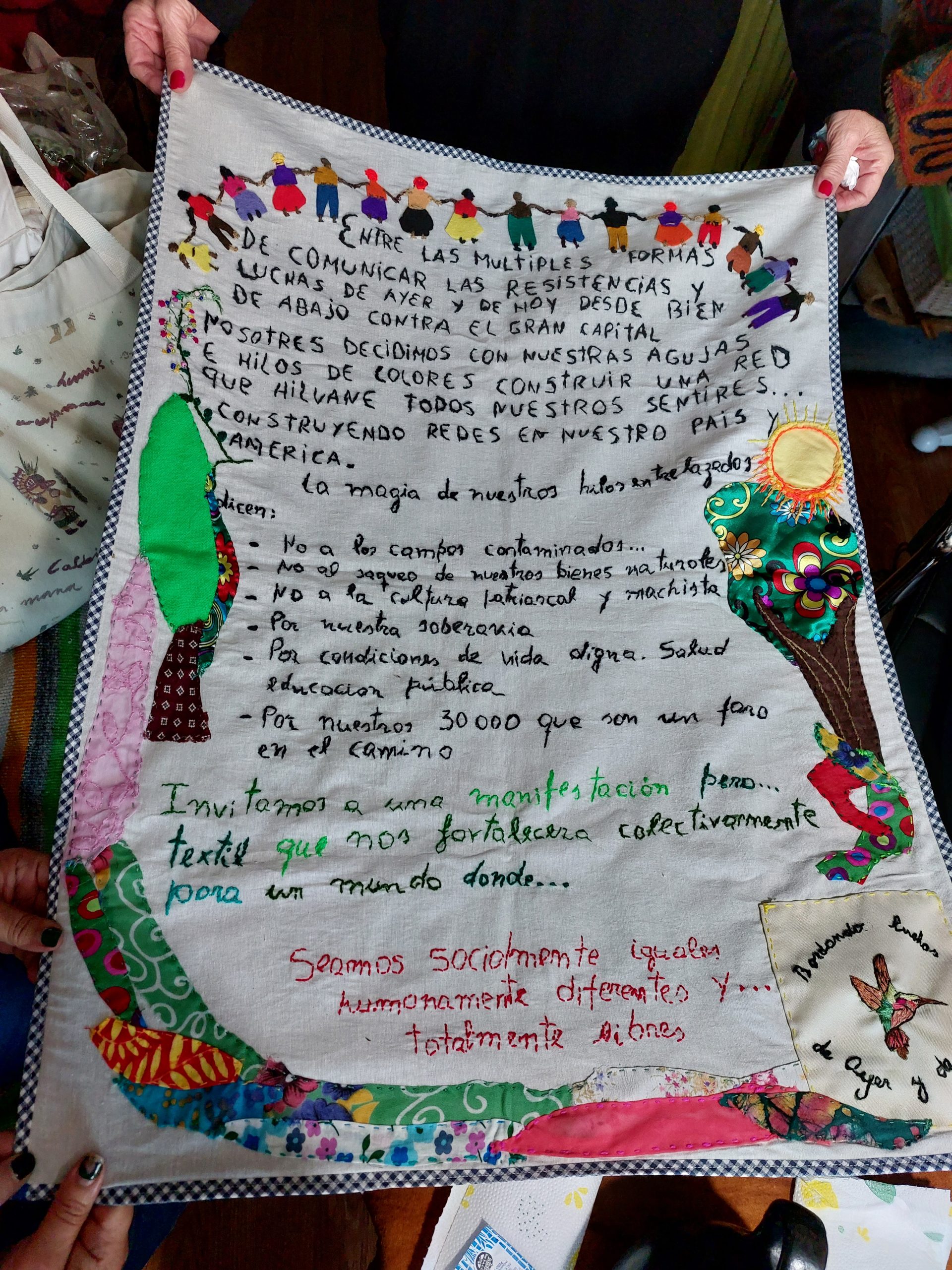 Manifiesto del colectivo textil Bordando Luchas de Ayer y de Hoy. Fotografía de Angela Di Matteo, Buenos Aires, 2023.