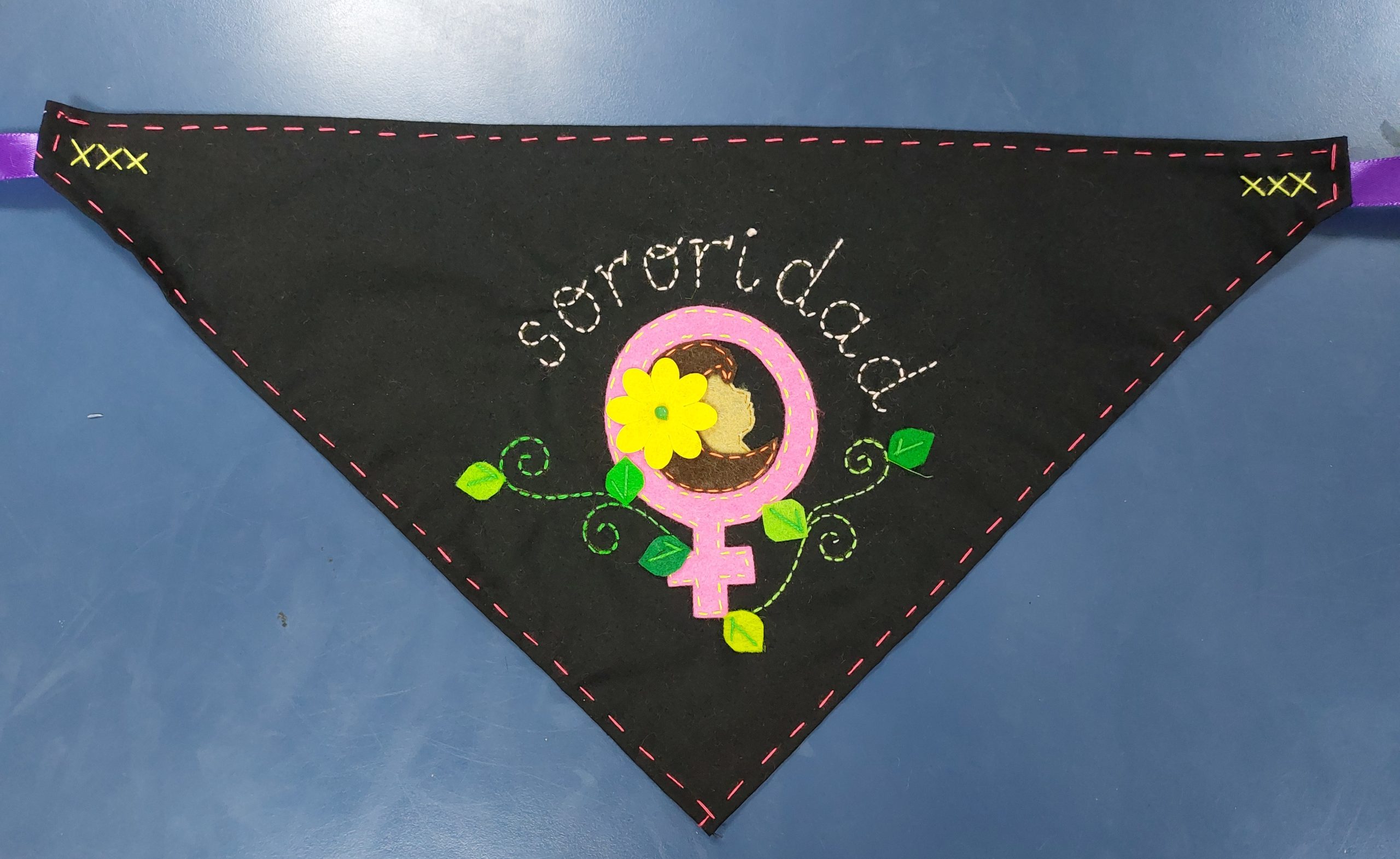 Memorarte Arpilleras Urbanas, pañoleta feminista. Fotografía de Angela Di Matteo, Santiago de Chile, 2023.
