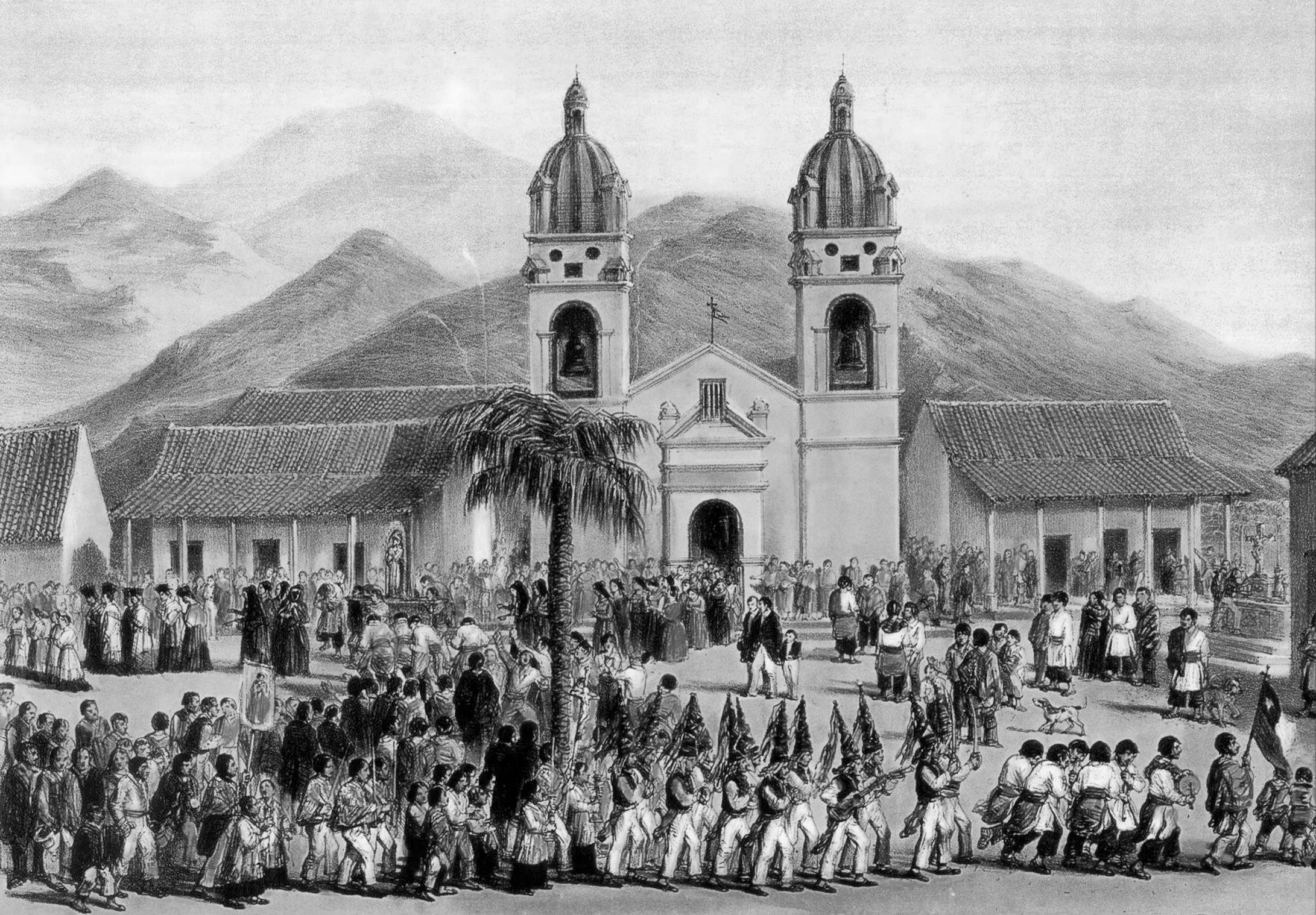 Litografía de Andacollo de 1836, que aparece en Atlas de Claudio Gay de 1854.