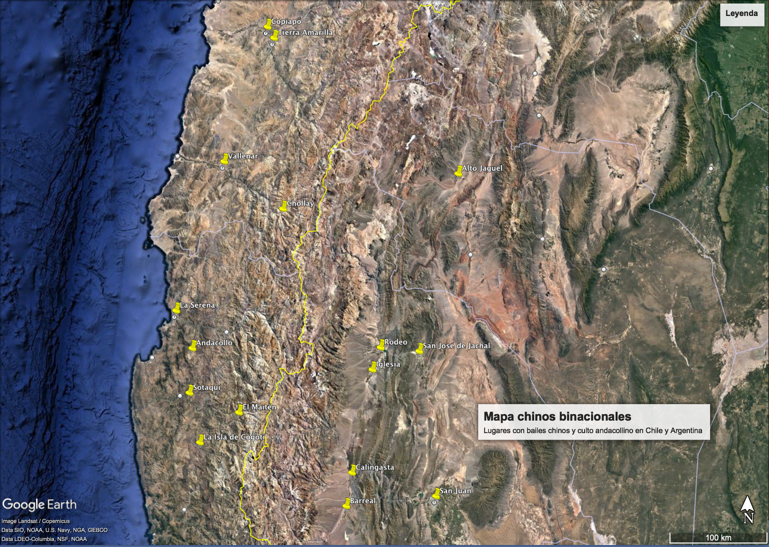 - Entrevista a Carlos Carvajal, miércoles 15 de septiembre de 2021. Vía telemática. Se incorpora al final del listado de imágenes un mapa de referencia para apreciar la extensión territorial de la presencia de bailes chinos y el culto andacollino en la zona cordillerana coquimbana-cuyana.↵