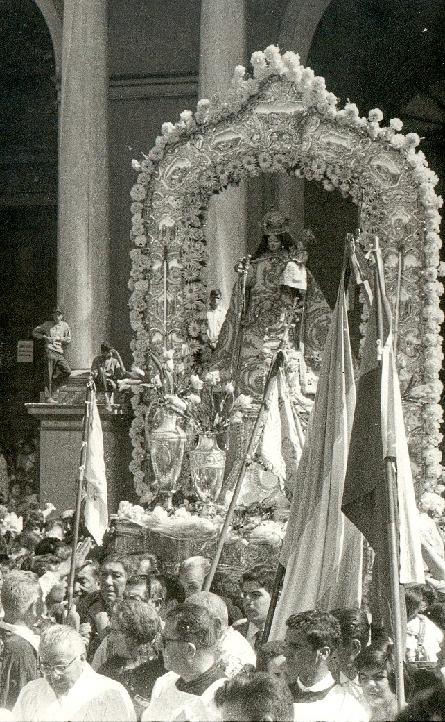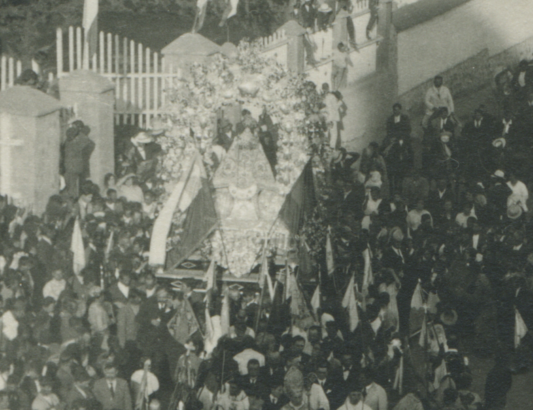 - Imagen 8: salida en procesión de la Virgen de Andacollo. C. 1950. Archivo Sergio Peña Álvarez.