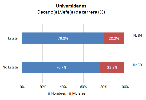Para ahondar en la segregación vertical según género en Chile, se presentan y discuten a continuación los principales resultados relativos al acceso a los principales puestos de toma de decisión en el sector de la educación superior, para luego centrarse en la distribución de las posibilidades de acceso al puesto más alto dentro la jerarquía del sector de la educación superior: la rectoría.