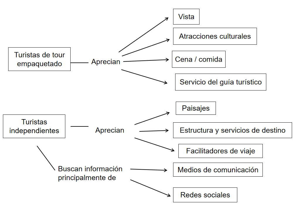 Figura 13. Marco conceptual sobre viajeros de tour empaquetado/independientes